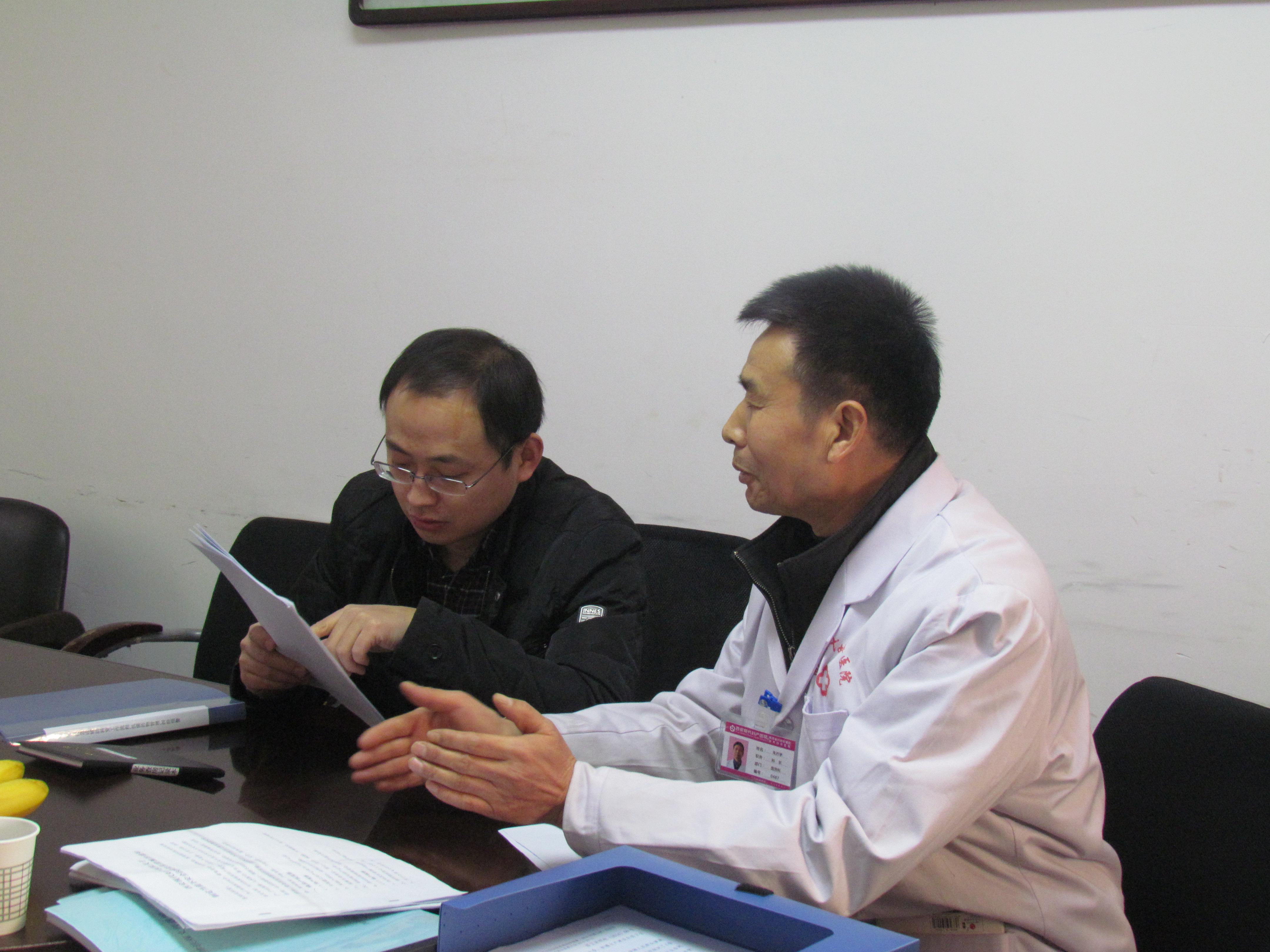 医务科主任朱开学对专家讲解医院的病例管理工作