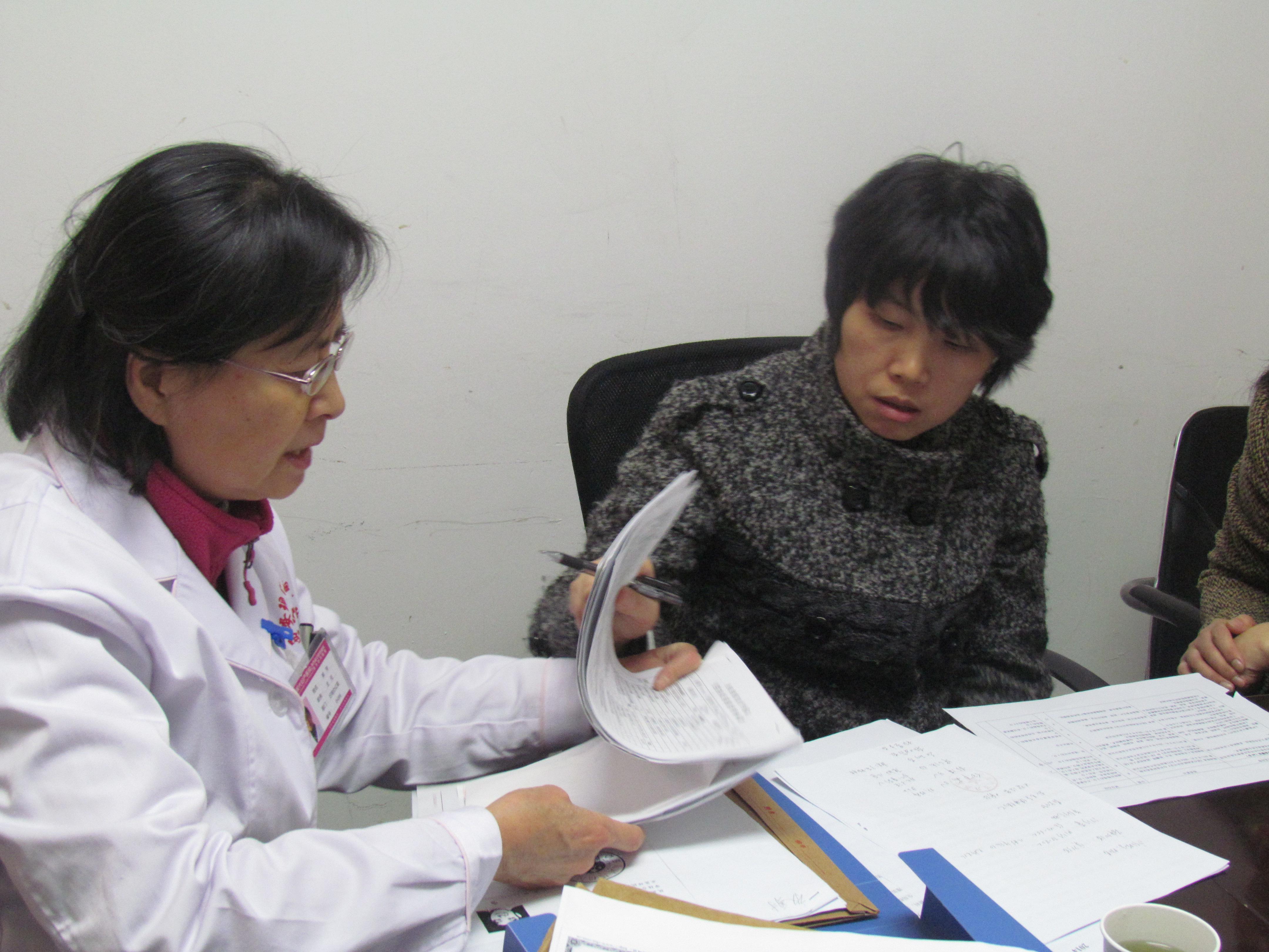 办公室主任郭萍陪同专家检查医务人员的相关资料