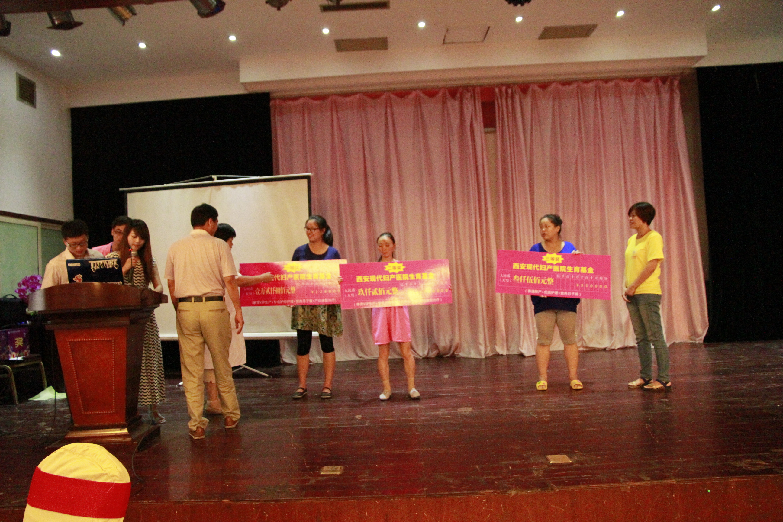 三位幸运的孕妈妈抽中一二三等奖,分别获得我我院提供的生育基金12800、9200元和3500元大奖